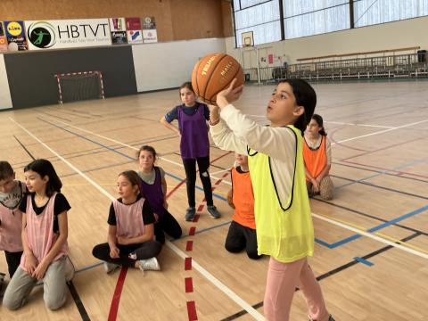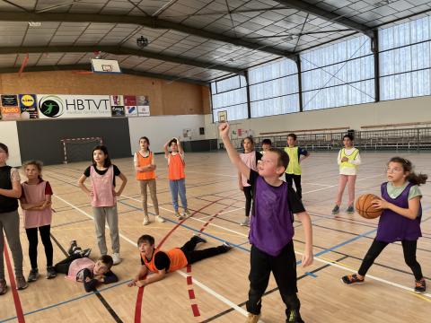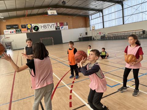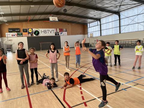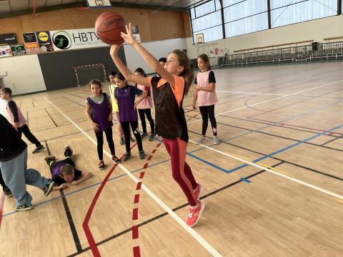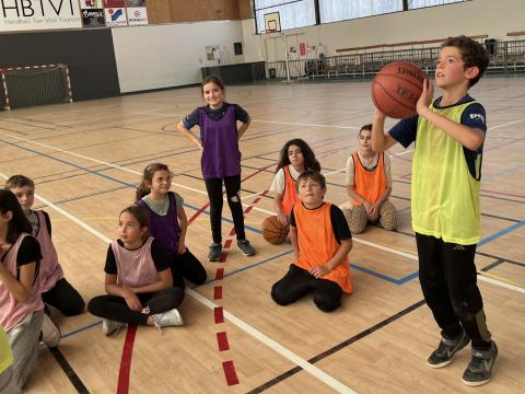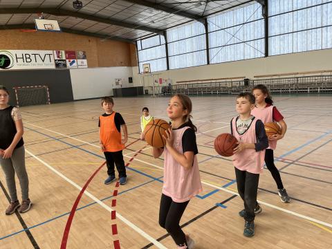 Chaque jeudi après-midi de cette période, les CM2 se rendent à la halle des sports afin de se préparer pour la rencontre USEP Basket programmée fin janvier. Ateliers dribble, concours de shoots et petits matchs avec ou sans contraintes sont au menu de ces séances bien remplies. Chacun se risque également au rôle d'arbitre afin d'en percevoir la difficulté et bien sûr de comprendre pourquoi ils méritent le respect !