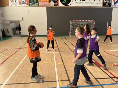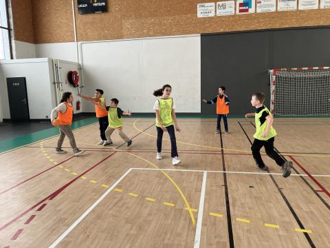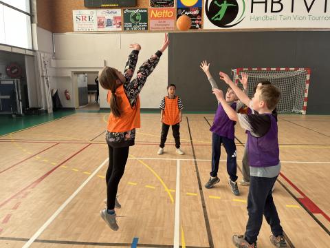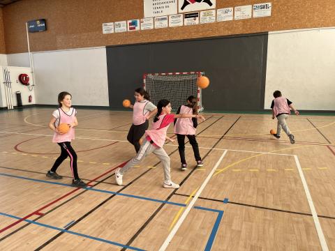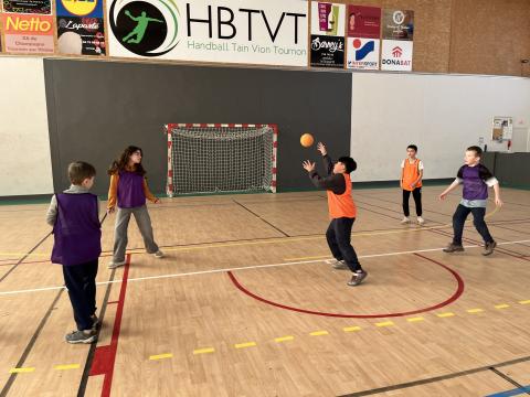 La classe des CM2 a démarré un cycle handball. Les séances se déroulent, comme pour le basket, à la halle des sports de Tournon, tous les jeudis après-midi. Ce cycle, qui va durer neuf séances, s'achèvera en apothéose lors d'une rencontre USEP programmée au gymnase Jeannie Longo le mardi 31 mars.