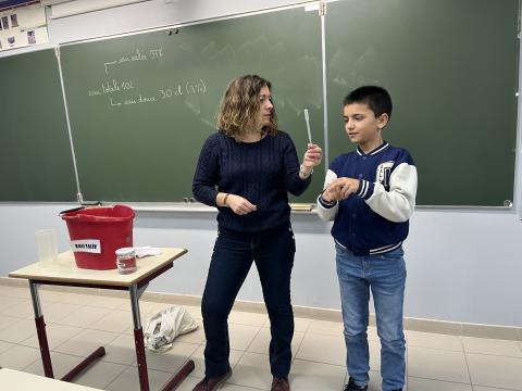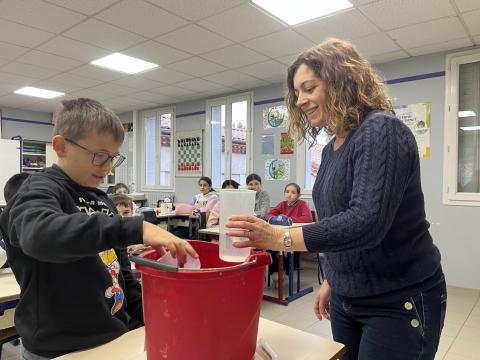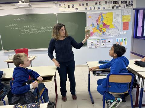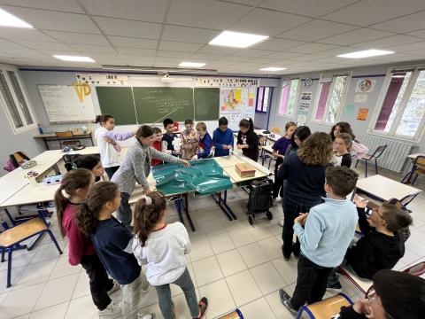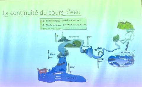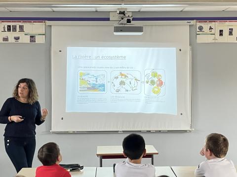 Dans le cadre du projet « sensibilisation et découverte des milieux aquatiques », Céline notre intervenante « rivière » est venue proposer une animation de 3 heures. Les thèmes abordés étaient : l’eau sur Terre (ressource & répartition), le cycle de l’eau, les changements d’état, la physionomie d’un cours d’eau de sa source à son embouchure par la réalisation d’une maquette, les impacts humains sur la rivière (remembrement, endiguement, pollutions…) le rôle et le fonctionnement de la ripisylve (l'ensemble des formations boisées, buissonnantes et herbacées présentes sur les rives d'un cours d’eau, d'une rivière ou d'un fleuve) ; mais aussi la démarche scientifique par la réalisation d’expériences en petits groupes. Bref une animation pour comprendre l’importance de la préservation de ce milieu si proche et familier de tous.