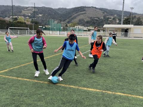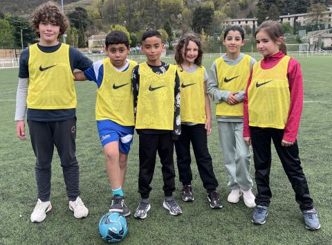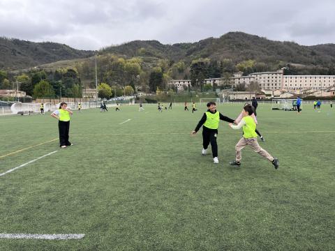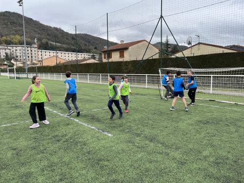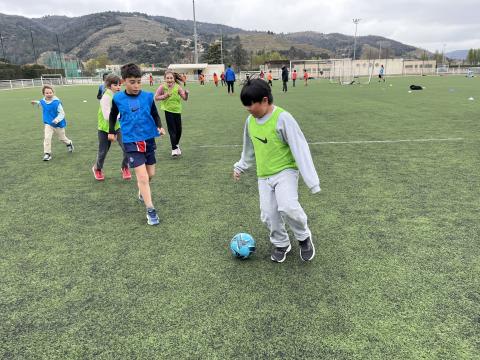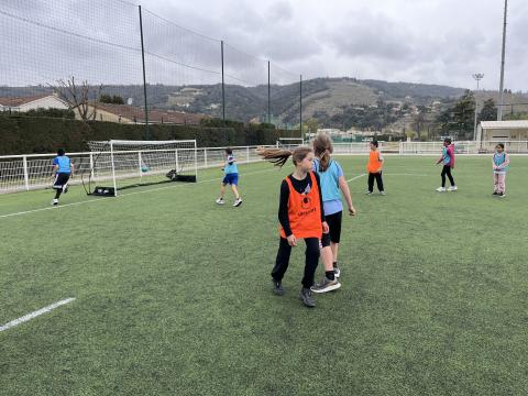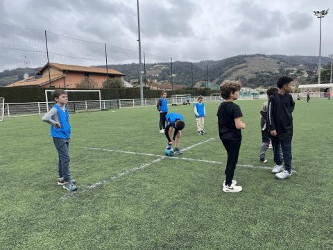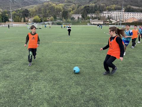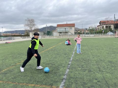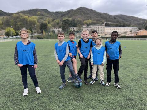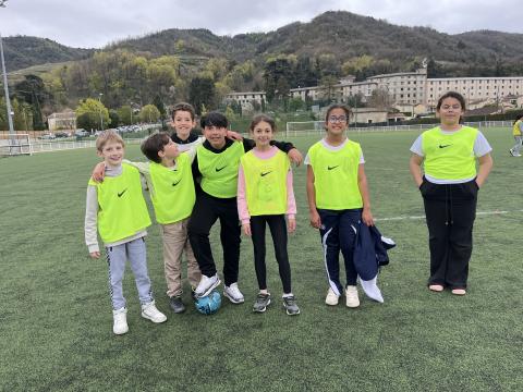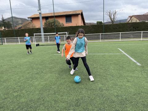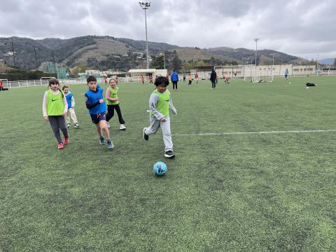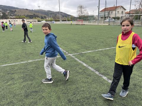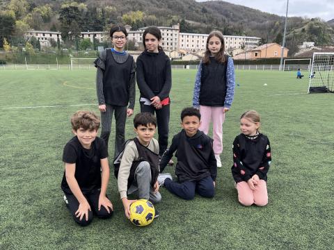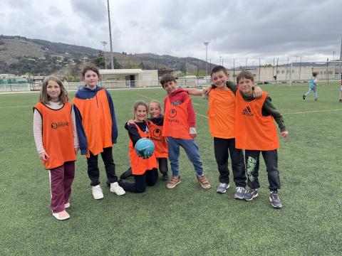C’est hier après-midi que la classe des CM2 a finalisé son cycle foot par une rencontre au stade de Tournon avec les classes de CM1 et CE2. Huit équipes mélangées CE2-CM1 & CM2 de 5 joueurs ont pu s’affronter lors de ce tournoi organisé en partenariat avec le RCTT. Un grand merci à Julien, notre intervenant spécialisé, pour sa sympathie et son efficacité, qui a remarquablement officié lors de cette rencontre et tout au long du cycle.