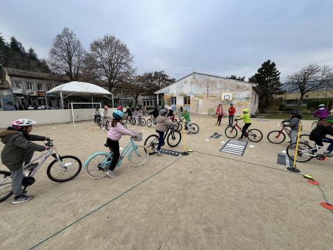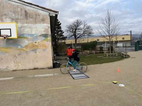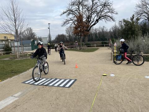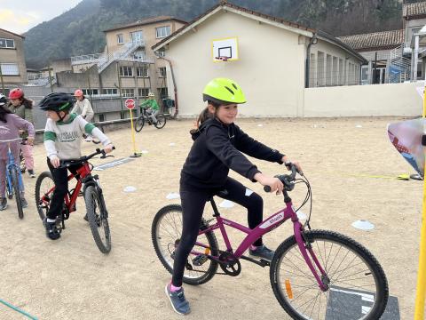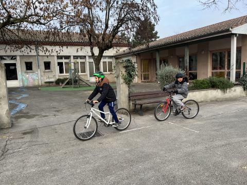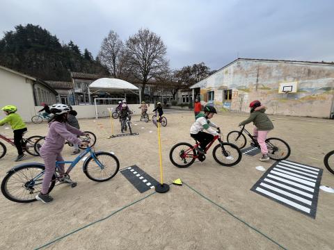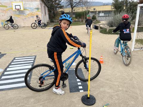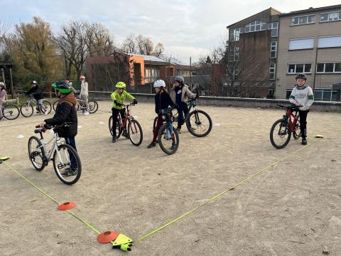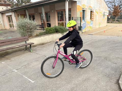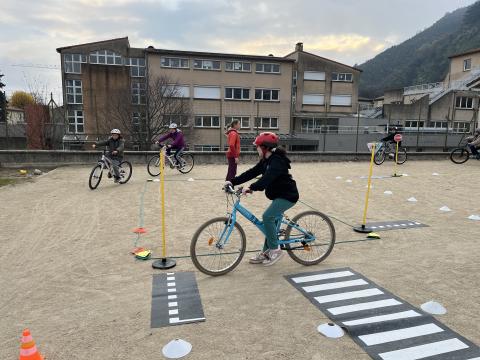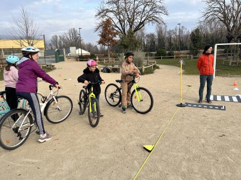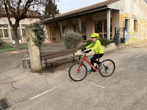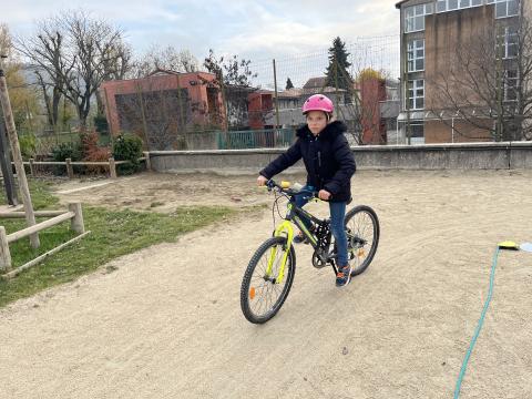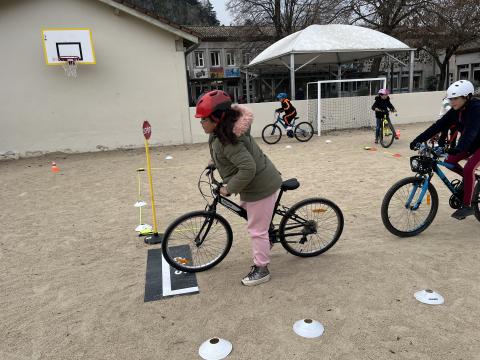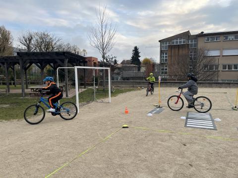 Il s’agissait de découvrir la mobilité à vélo en milieu sécurisé (école) :