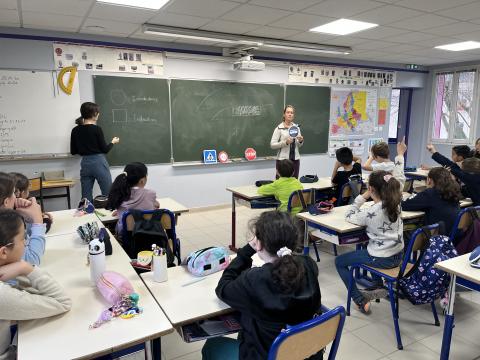 Ce jeudi matin a eu lieu la deuxième séance du savoir rouler à vélo dédiée au bloc 2 : savoir circuler.
